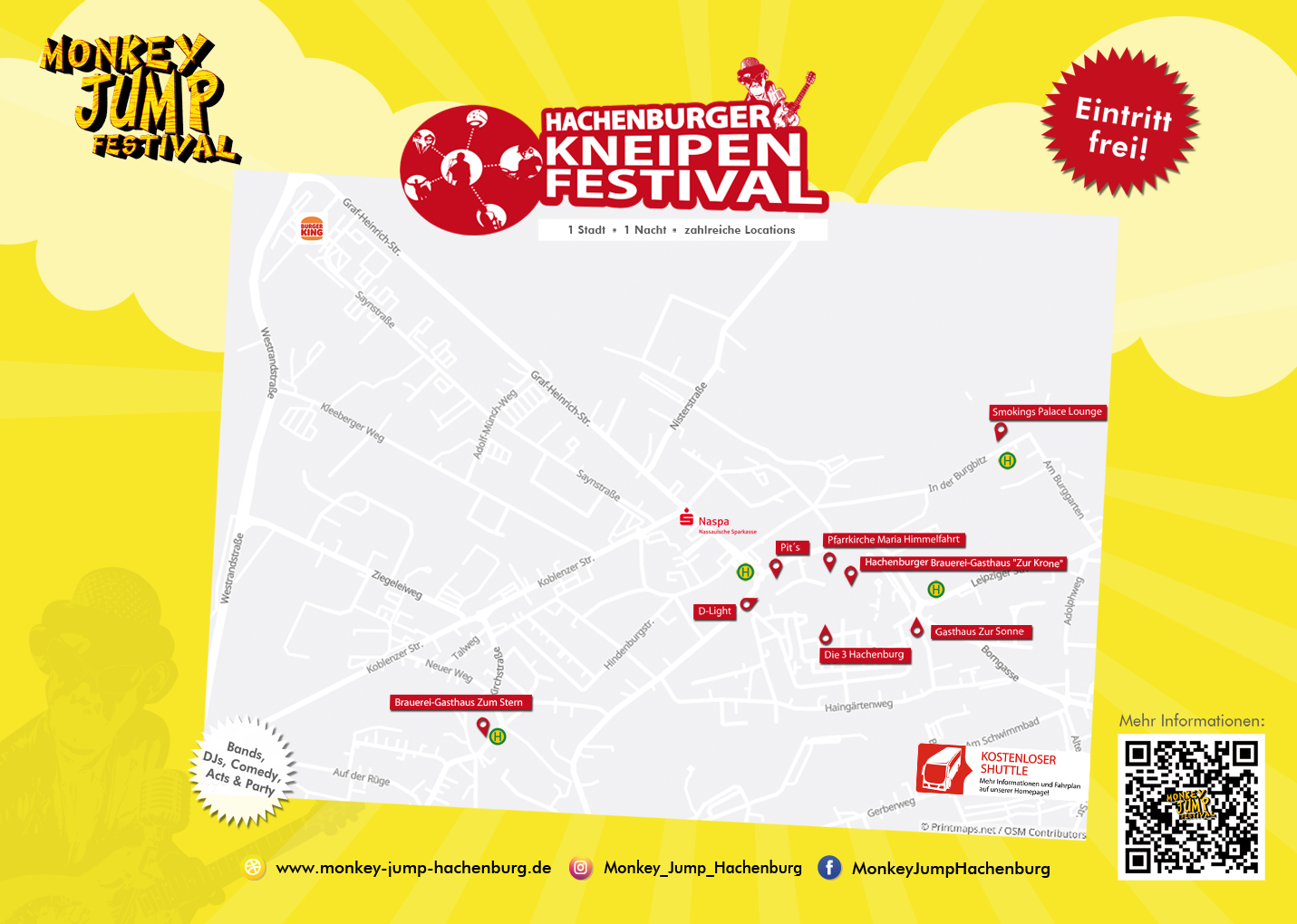 Das sind die Bands und Locations, die beim 21. Monkey Jump Kneipenfestival 2026 teilnehmen: